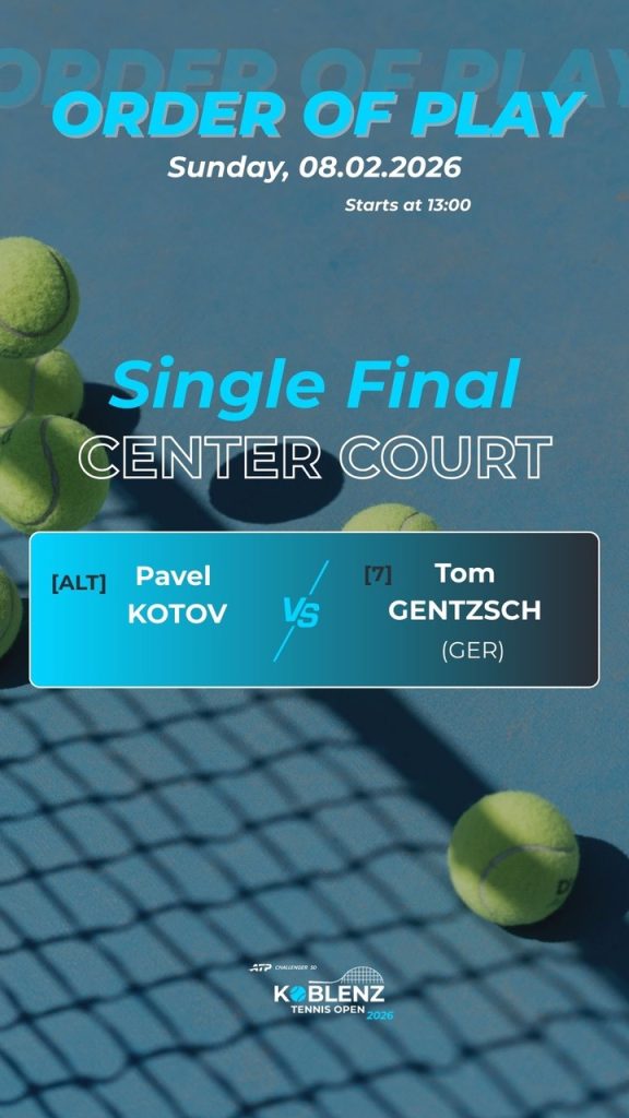 Die Koblenz Tennis Open bringen internationales ATP-Herrentennis in die EPG Arena der Stadt Koblenz. Vom 01. bis 08. Februar 2026 treffen internationale Profispieler auf aufstrebende Talente und liefern eine Woche voller Spannung, Emotionen und sportlicher Höchstleistung.